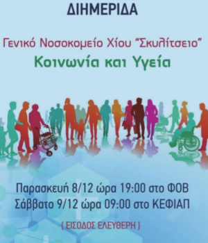 Διημερίδα με θέμα Κοινωνία και Υγεία πραγματοποιείται Παρασκευή και Σάββατο (8 & 9 Δεκεμβρίου).
