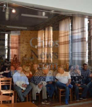 Η συνέλευση πραγματοποιήθηκε με κάλεσμα του προέδρου του χωριού Μιχάλη Χαλκιά, ενώ συμμετείχαν ο Δήμαρχος Μανώλης Βουρνούς και οι αντιδήμαρχοι Απόστολος Τζιώτης και ο Ανδρέας Βεργίτσης (αντιδήμαρχος Νότιας Χίου).