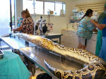 Το δρόμο για το χειρουργείο πήρε ένας πύθωνας Βιρμανίας, μήκους 3,6 μέτρων και βάρους 27 κιλών. Ο Χουντίνι που ζει στο Αϊνταχο, χρειάστηκε να μπει επειγόντως στο χειρουργείο όταν κατάπιε μια ηλεκτρική κουβέρτα, μαζί με το καλώδιο και το χειριστήριο.