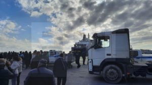 Το γεγονός ότι τελικά δεν κατέβηκαν τα φορτηγά με τα προϊόντα, έκαναν τους συγκεντρωμένους να πιστέψουν ότι θα επιχειρούταν η πρόσδεση στο λιμάνι της Χίου, οπότε και περίμεναν το πλοίο στην πόλη…