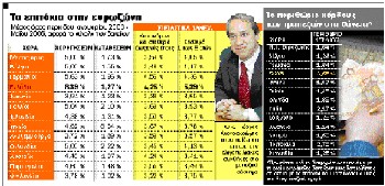 Αυτό προκύπτει από έκθεση-κόλαφο για τα εγχώρια χρηματοπιστωτικά ιδρύματα, την οποία έδωσε σήμερα στη δημοσιότητα η Ευρωπαϊκή Κεντρική Τράπεζα. Οι ελληνικές τράπεζες χρεώνουν τα ακριβότερα επιτόκια χορηγήσεων στους δανειολήπτες, με σημαντική διαφορά σε σχέση με τον μέσο όρο της ευρωζώνης. Ταυτόχρονα καρπώνονται τα υψηλότερα περιθώρια κέρδους στα δάνεια, καθώς η διαφορά ανάμεσα στα επιτόκια με τα οποία δανείζουν και σ’ αυτά με τα οποία δανείζονται οι ίδιες στη διατραπεζική αγορά είναι διπλάσια σε σχέση με τον μέσο όρο της ευρωζώνης.