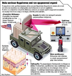 Στην πρώτη παρουσίαση του ADS, σε βάση της πολεμικής αεροπορίας στην Tζόρτζια, ο ανταποκριτής του Reuters δέχτηκε να υποβληθεί στην επώδυνη εμπειρία της ακτίνας. Aν και βρισκόταν σε απόσταση εκατοντάδων μέτρων, αναφέρει ότι ένιωσε σαν να είχε μόλις ανοίξει έναν καυτό φούρνο.