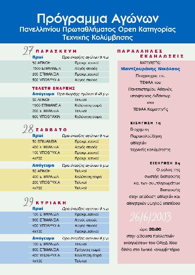 Αρχική Νέα Αθλητικά Πρωτάθλημα Τεχνικής Κολύμβησης ΝέαΑθλητικά Πρωτάθλημα Τεχνικής Κολύμβησης 24 Ιουνίου 2003 22 Διαφήμιση