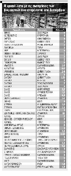 Στελέχη μεγάλου σούπερ μάρκετ έλεγαν χθες στα «ΝΕΑ» ότι εκτός από τους τιμοκαταλόγους με τις ανατιμήσεις, υπάρχουν και οι βιομηχανίες που- μέχρι στιγμής τουλάχιστον – έχουν ενημερώσει προφορικά τις αλυσίδες ότι ετοιμάζονται να προχωρήσουν σε αυξήσεις, χωρίς να έχουν επισημοποιήσει την πρόθεσή τους. Η ενημέρωση αφορά αυξήσεις σε προϊόντα όπως για παράδειγμα τα κίτρινα τυριά και- σύμφωνα με τις πληροφορίες- θα είναι της τάξεως του 10%- 15%.