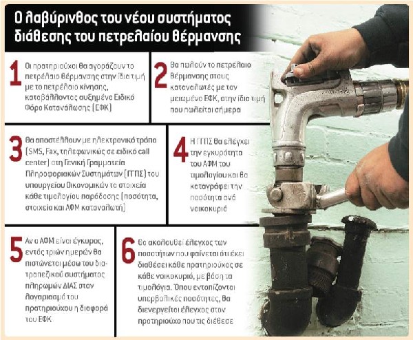 -Στη Γενική Γραμματεία Πληροφοριακών Συστημάτων (ΓΓΠΣ) θα δημιουργηθεί ειδικό μητρώο λιανοπωλητών πετρελαίου θέρμανσης, στο οποίο θα καταγραφούν όλα τα στοιχεία τους καθώς και ένας αριθμός τραπεζικού λογαριασμού για συναλλαγές τους με την Εφορία. Θα δημιουργηθεί επίσης ειδική ηλεκτρονική υποδομή καθώς και τηλεφωνικό κέντρο (call center) για τους πρατηριούχους.