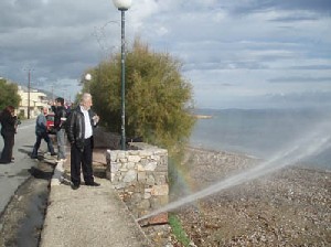 Το σημείο που καταλήγει ο αγωγός από το Δελφίνι, στο ύψος του Αρμένη ποταμού, επέλεξε ο πρόεδρος της ΔΕΥΑΧ κ Γ. Μουρούνας, για να παρουσιάσει την ολοκλήρωση του δικτύου που κατεβάζει το νερό από την Βορειοανατολική Χίο.