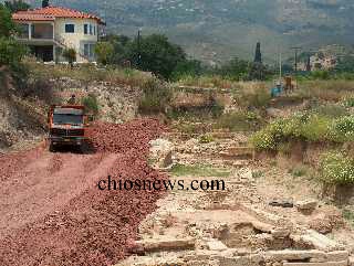 Επεσε λίγο κόκκινο χαλίκι στα αρχαία του οικοπέδου της Λέτσαινας που προορίζεται να γίνει το μέγαρο IKA και μετά σταμάτησε χωρίς άλλη αιτιολόγηση.