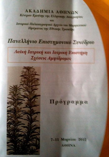 Πραγματοποιήθηκε στην Αθήνα 7-11 Μαρτίου 2012 το Πανελλήνιο Επιστημονικό Συνέδριο με θέμα τη Λαϊκή Ιατρική και την Ιατρική Επιστήμη.