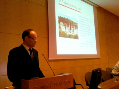 Μεταξύ των ομιλητών της 2ης μέρας του Συνεδρίου και 2ης Συνεδρίας ο Δρ Ανδρέας Μιχαηλίδης με θέμα “περί των υγειονομικών της Χίου κατά τις Σφαγές του 1822.