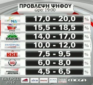 ΕΚΛΟΓΕΣ 2012: exit poll στις 19.00, μεγάλη πτώση δικομματισμού, 2ος ο ΣΥΡΙΖΑ