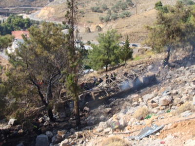Αμέσως τυλίχτηκε στις φλόγες, με αποτέλεσμα 2 άτομα να απανθρακωθούν… (Πρόκειται για ένα άντρα και μια γυναίκα που μέχρι τη 1.00 μ.μ. δεν ήταν γνωστή η ταυτότητά τους).