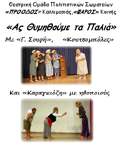 Η Θεατρική ομάδα των πολιτιστικών σωματείων Καλλιμασιάς “Πρόοδος” και Κοινής “Φάρος” σας προσκαλούν στην εκδήλωση
