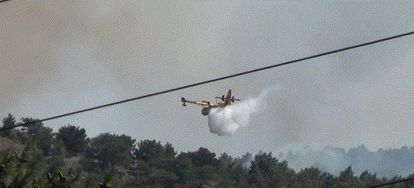 Και δύο πυροσβεστικά αεροσκάφη τύπου CANADER πετούν προς την περιοχή της βόρειας Χίου για να θέσουν υπό έλεγχο το μέτωπο της πυρκαγιάς που καίει στο βαθύ λαγκάδι.