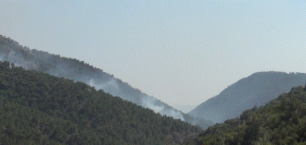 Εν τω μεταξύ από τα ρετσινάδικα θα ξεκινούσαν δύο πεζοπόρα τμήματα των ΕΜΑΚ και της πυροσβεστικής. Το πρώτο θα βρισκόταν στα ριζά του λόφου Καλόγερος αφού διέσχιζαν μια απόσταση 2 περίπου χιλιομέτρων και ακολουθώντας αρχικά τον παλιό πετρόχτιστο τούρκικο δρόμο και εν συνεχεία την αντιπυρική ζώνη που έκανε ο στρατός (που μπορεί να έκανε περισσότερες ζώνες αυτές τις μέρες από ότι είχε το νησί όλα αυτά τα χρόνια).