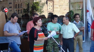 ΠΑΜΕ-συγκέντρωση είσοδο Απλωταριάς, ομιλία αντιπρ. Σωματείου Ιδιωτικών Υπαλλήλων Ευγενίας Κώττη