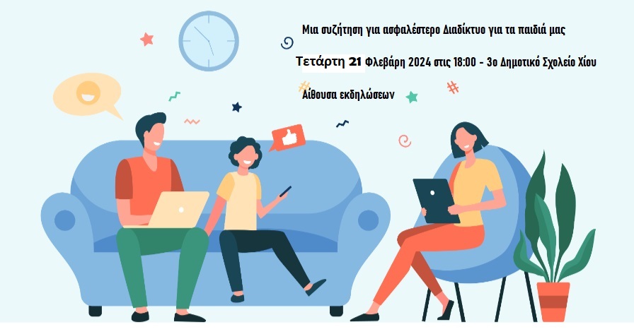 Μια πρώτη συζήτηση με τους γονείς για την ενασχόληση των παιδιών στο διαδίκτυο και όχι μόνο, αποτελεί η εκδήλωση που οργανώνει το 3ο Δημοτικό Σχολείο Χίου.