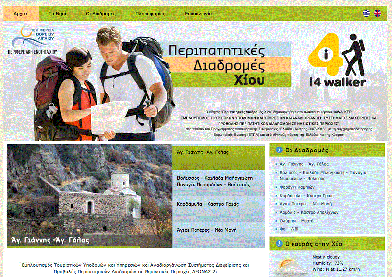 ολοκληρώθηκε η δράση του διασυνοριακού έργου i4WALKER, ενταγμένου στο Πρόγραμμα Διασυνοριακής Συνεργασίας Ελλάδα-Κύπρος, η οποία αφορούσε στη δημιουργία και εκτύπωση υλικού προβολής για τις περιπατητικές διαδρομές της Χίου.