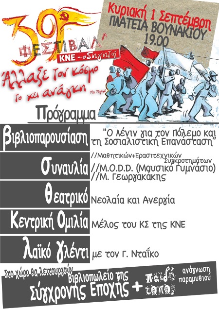 Με σύνθημα «Άλλαξε τον κόσμο Τοʼ χει ανάγκη» πραγματοποιείται την Κυριακή 1η Σεπτέμβρη, η γιορτή στη Χίο στα πλαίσια του 39ου Φεστιβάλ ΚΝΕ-Οδηγητή από τις 7.00 μ.μ. στην πλατεία Βουνακίου.