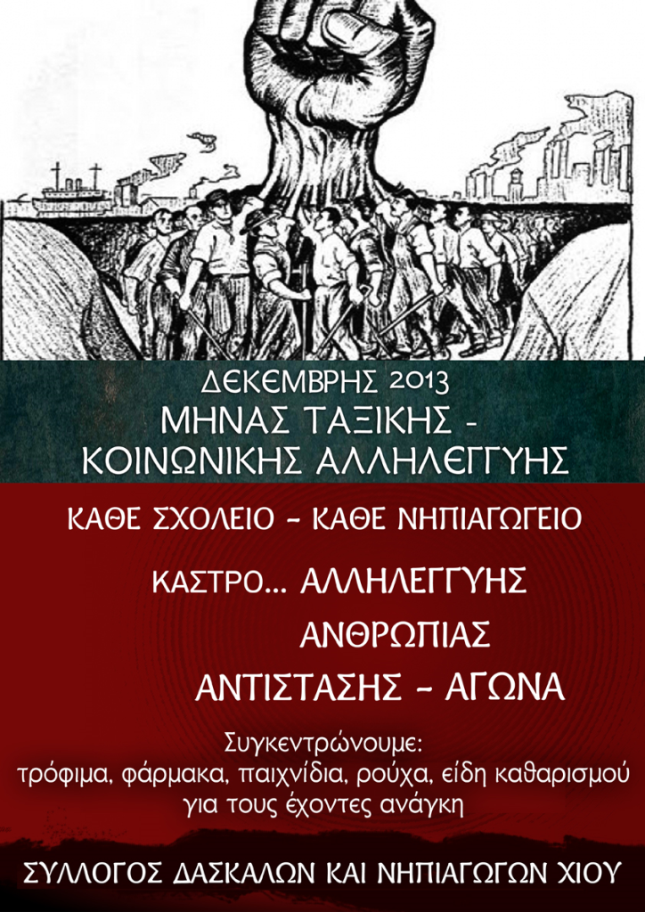 Το Δ.Σ. του Συλλόγου μας, γνωρίζοντας ότι είναι πολλές και καθημερινές οι πρωτοβουλίες σας, αποφάσισε να πάρει συλλογική πρωτοβουλία, ώστε οι δράσεις στην κατεύθυνση της αλληλεγγύης στο συνάνθρωπο ν α αποκτήσουν ευρύτερο περιεχόμενο.