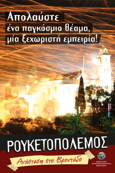 Όλα είναι έτοιμα από πλευράς Δήμου για τη διεξαγωγή του εθίμου του ρουκετοπόλεμου, το βράδυ του Μεγάλου Σαββάτου στο Βροντάδο της Χίου.