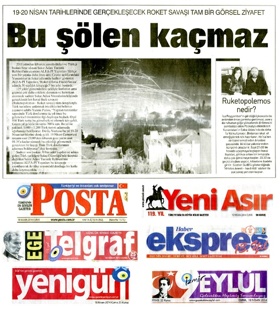 Επίσης, διανέμεται σε εκθέσεις τουρισμού στη Σμύρνη και την Κωνσταντινούπολη. Φέτος, για πρώτη φορά, τρεις βδομάδες πριν το Πάσχα κυκλοφόρησε στα τούρκικα σε 5.000 αντίτυπα ειδική έκδοση για τον Ρουκετοπόλεμο.