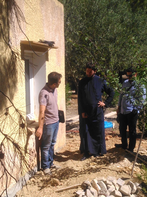 Σε επίσκεψη- αστραπή στο Αίπος, ο πάτερ Αντώνιος ενημερώθηκε για την πορεία των εργασιών από τους πολιτικούς μηχανικούς Στ. και Στ. Αντωνίου.