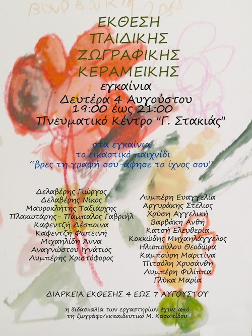 Έκθεση των έργων των παιδικών τμημάτων ζωγραφικής/κεραμεικής θα πραγματοποιηθεί στα Νένητα.
