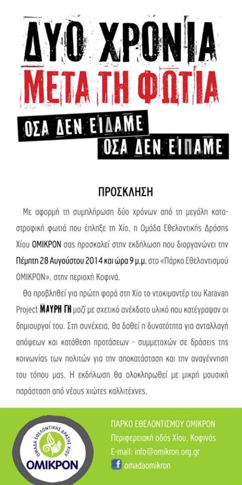 Τίτλος: ΔΥΟ ΧΡΟΝΙΑ ΜΕΤΑ ΤΗ ΦΩΤΙΑ: ΟΣΑ ΔΕΝ ΕΙΔΑΜΕ, ΟΣΑ ΔΕΝ ΕΙΠΑΜΕ”