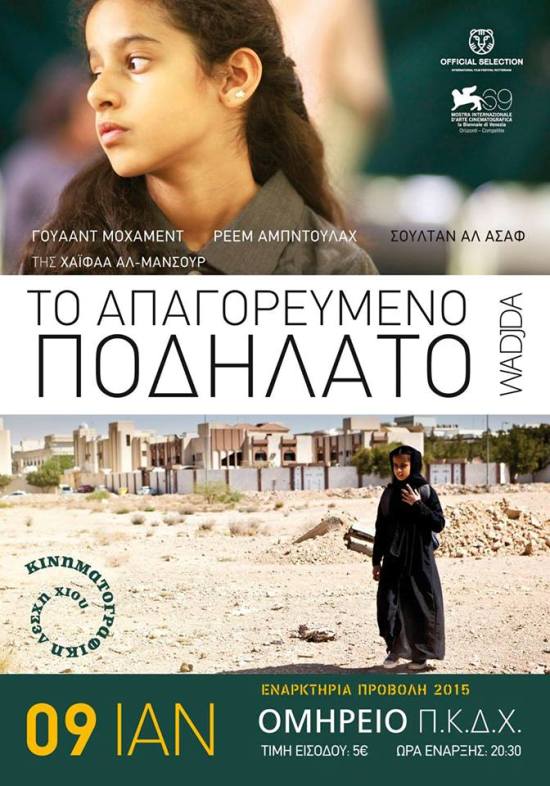 Η Κινηματογραφική Λέσχη Χίου προβάλει την Παρασκευή 09-01- 2015 και ώρα 20:30 στο Ομήρειο Π.Κ.Δ.Χ. την κοινωνική ταινία ‘Το απαγορευμένο ποδήλατο’ σε σκηνοθεσία Χαϊφαά Αλ-Μανσούρ.