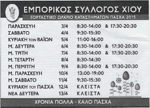 Αρχική Νέα Τοπικά Το ωράριο των καταστημάτων τη Μ. Εβδομάδα ΝέαΤοπικά Το ωράριο των καταστημάτων τη Μ. Εβδομάδα 10 Απριλίου 2015 21 Διαφήμιση