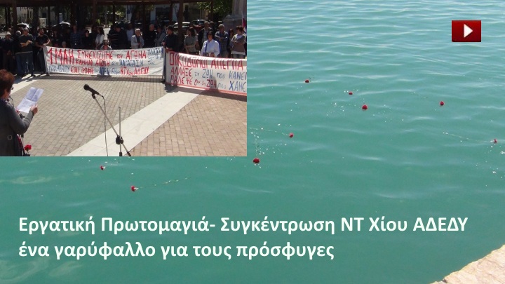 Χωρίς κείμενο η πρόεδρος του Συλλόγου Γυναικών Χίου, πρώην πρόεδρος του Σωματείου Ιδιωτικών υπαλλήλων και εμποροϋπαλλήλων, άνεργη δημοσιογράφος, Ευγενία Κώττη, συγκίνησε τους παρευρισκόμενους με την ομιλία της και το κάλεσμα να διαδηλώσουν για τους πρόσφυγες που θέλουν να ζήσουν ρίχνοντας ένα γαρύφαλλο στο λιμάνι.