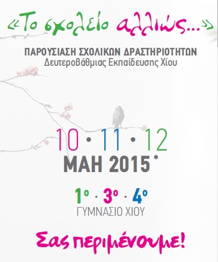 Η σχολική κοινότητα αποχαιρετά τη σχολική χρονιά, παρουσιάζοντας Προγράµµατα Σχολικών ∆ραστηριοτήτων, που εκπονήθηκαν από µαθητικές οµάδες σχολείων της ∆ευτεροβάθµιας Εκπαίδευσης Χίου, µε την καθοδήγηση και την εµψύχωση των καθηγητών και καθηγητριών τους.