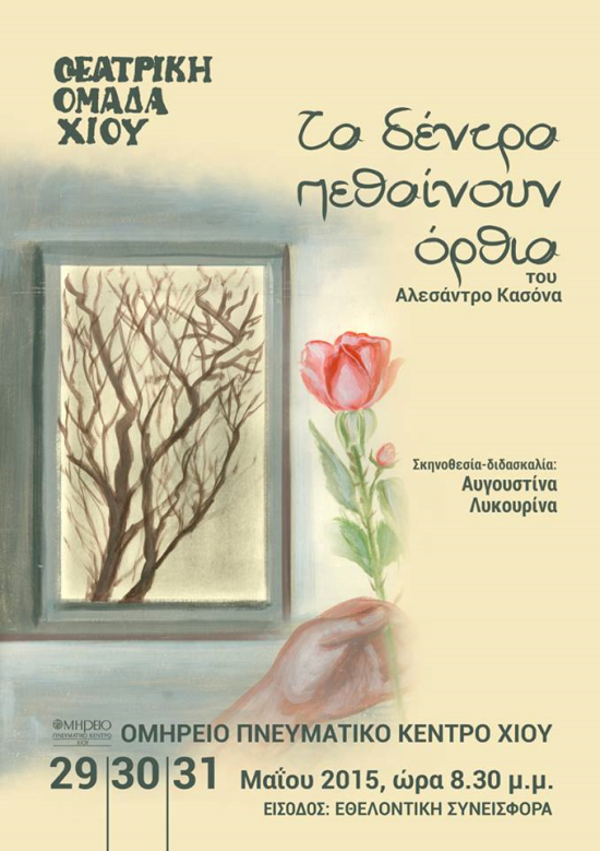 Η ΘΕΑΤΡΙΚΗ ΟΜΑΔΑ ΧΙΟΥ παρουσιάζει τη θεατρική παράσταση “ΤΑ ΔΕΝΤΡΑ ΠΕΘΑΙΝΟΥΝ ΟΡΘΙΑ”, από 29 μέχρι 31 Μαίου στο ΟΜΗΡΕΙΟ.