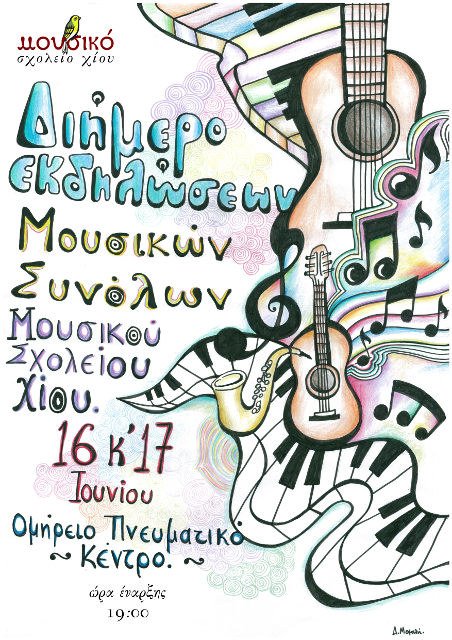 Το Μουσικό Σχολείο Χίου διοργανώνει διήμερο μουσικών εκδηλώσεων την Τρίτη 16 και την Τετάρτη 17 Ιουνίου 2015 στις 7:00 μμ. Την εκδήλωση πλαισιώνουν τα σύνολα του σχολείου ,θεάτρου και μουσικής (σύνολο κρουστών, σύνολο κλασσικής μουσικής, σύνολο φωνητικό και ορχηστρικό παραδοσιακής μουσικής, σύνολο ευρωπαϊκής μουσικής).