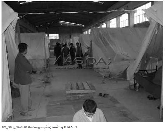(φωτογραφία από τη φιλοξενία προσφύγων στο χώρο της ΒΙΑΛ στα τέλη του 2002- Δείτε εδώ φωτογραφίες από την Επιτροπή Αλληλεγγύης στους πρόσφυγες- “Λάθρα;”.