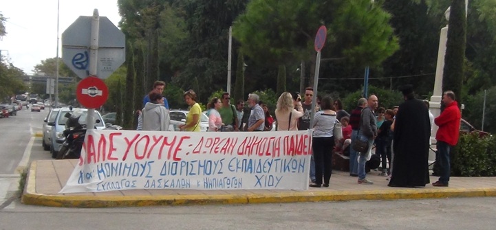 Καλώντας γονείς, μαθητές και δασκάλους να πάρουν μέρος διαμαρτύρονται για περισσότερα από 100 κενά (σύμφωνα με το σύλλογο δασκάλων) στο σύνολο της Πρωτοβάθμιας εκπαίδευσης και με προβλήματα λειτουργίας των ολοήμερων σχολείων όπως και του Ειδικού Σχολείου στην πόλη της Χίου.