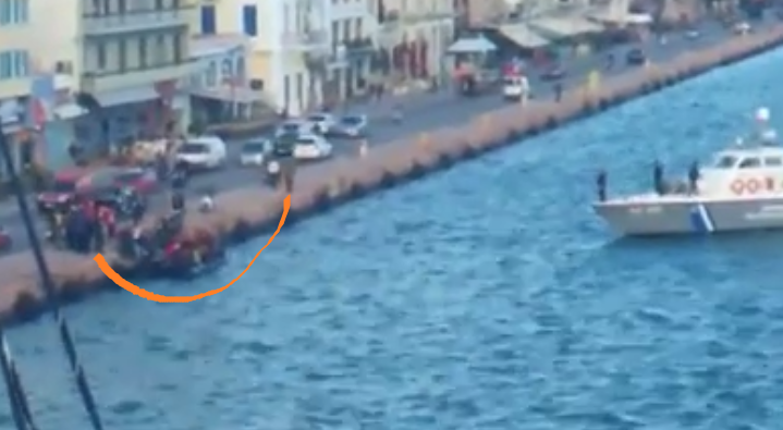 Στο ύψος του flocafe βγήκε το πρωί πλαστική λέμβος με πρόσφυγες, υπό τη συνοδεία σκάφους του Λιμενικού που προτίμησε το λιμάνι προφανώς για μεγαλύτερη ασφάλεια.