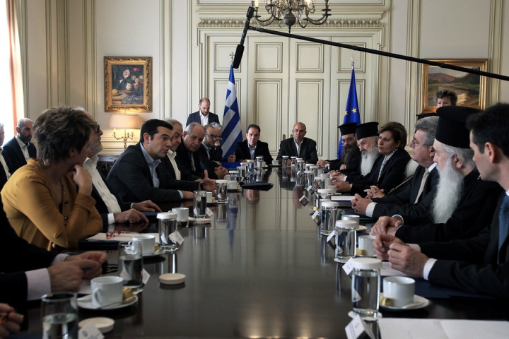 Στην σύσκεψη συμμετείχε και ο Αρχιεπίσκοπος Ιερώνυμος που δήλωσε την πρόθεση της Εκκλησίας για μεγαλύτερη προσφορά αναφορικά με τους πρόσφυγες. Έθεσε επιπλέον το θέμα των ανήλικων παιδιών που φιλοξενούνται από δομές της Εκκλησίας. Πρόκειται για παιδιά που είτε έμειναν ορφανά, καθώς οι γονείς τους πνίγηκαν, είτε ήταν ασυνόδευτα.
