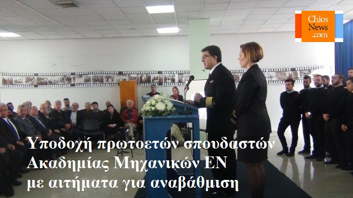 Τους πρωτοετείς σπουδαστές της υποδέχτηκε η Ακαδημία Εμπορικού Ναυτικού Μηχανικών Χίου, παρουσία των εκπροσώπων των τοπικών αρχών αλλά και εφοπλιστικών γραφείων.