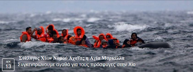 Ο “Σύλλογος Χίων Νομού Αχαΐας η Αγία Μαρκέλλα” συγκεντρώνει αγαθά για τους πρόσφυγες στην Χίο και σας καλεί όλους σε μια συλλογική προσπάθεια αλληλεγγύης.