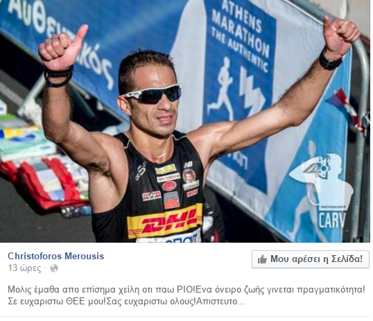 Μια ευχάριστη είδηση περίμενε το Χριστόφορο Μερούση, καθώς ο Χιώτης μαραθωνοδρόμος εξασφάλισε τη συμμετοχή του στους Ολυμπιακούς Αγώνες του Ρίο.