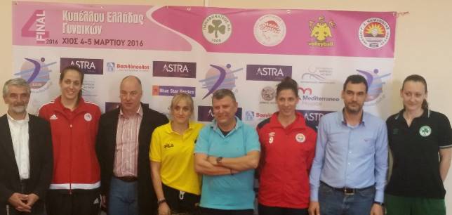 Ο Γενικός Γραμματέας της ΕΟΠΕ, Παναγιώτης Σιδέρης ανέφερε: «Η Χίος είναι ένα νησί που το συνδέει μακρά ιστορία και κουλτούρα πολιτισμού. Η διοργάνωση του Φάιναλ Φορ του Κυπέλλου Γυναικών 2016 «Astra Airlines» θα αποτελέσει μια μεγάλη γιορτή για την τοπική κοινωνία, τα νέα παιδιά και όλοι θα απολαύσουν ωραίο θέαμα από τέσσερις πολύ καλές ομάδες. Ταξιδεύσαμε όλοι μαζί από την Αθήνα, ομοσπονδία, ομάδες, διαιτητές, δημοσιογράφοι όπως αρμόζει στο κύρος μιας μεγάλης διοργάνωσης όπως είναι το Κύπελλο Ελλάδας. Θέλουμε σαν ομοσπονδία βόλεϊ να δείξουμε μία άλλη πλευρά, αλλά και το κοινωνικό πρόσωπο του αθλητισμού.