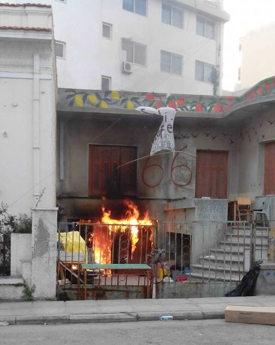 Το σημαντικό είναι ότι λίγες ώρες νωρίτερα οι αλλήλεγγυοι είχαν απομακρύνει φιάλες υγραερίου που χρησιμοποιούσαν για την παρασκευή φαγητού, παραδίδοντας το κτήριο στην ιδιοκτήτρια που εθελοντικά ως τώρα το πρόσφερε.