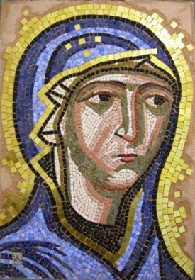 Σημείωση για την εικόνα της Παναγίας: Αντίγραφο τμήματος από το ψηφιδωτό «Σταύρωση».Νέα Μονή Χίου, 11ος αιώνας