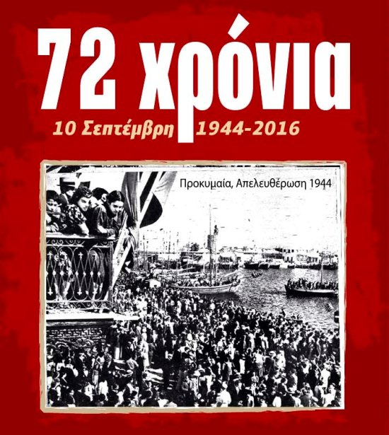 Εκδήλωση τιμής και μνήμης για τα 72 χρόνια από την απελευθέρωση του νησιού από τη ναζιστική κατοχή, πραγματοποιεί την Τρίτη, 13 Σεπτεμβρίου στις 7.00 μ.μ. στην πλατεία Βουνακίου ο Σύλλογος Φίλων & απογόνων Εθνικής Αντίστασης & ΔΣΕ.