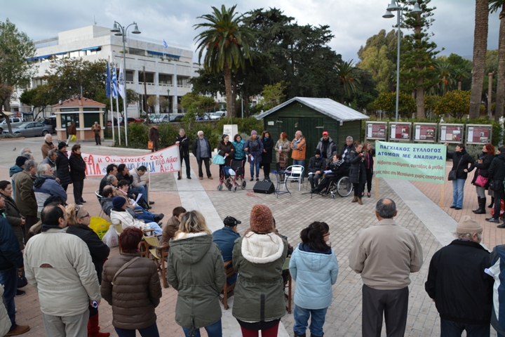 ‘’Αγαπητοί Συνάδελφοι. Ο Παγχιακός Σύλλογος ΑμεΑ συμμετείχε στο Πανελλήνιο Παναναπηρικό Συλλαλητήριο μετά από κάλεσμα της Περιφερειακής Ομοσπονδίας ΑμεΑ Βορείου Αιγαίου και της Εθνικής Συνομοσπονδίας ΑμεΑ. Όπως σημειώνει ο σύλλογος: «Φέτος μας βρίσκει σε τραγικότερη από ποτέ κατάσταση με τα βάρβαρα και εξουθενωτικά μέτρα λιτότητας που για έβδομη συνεχή χρονιά παίρνουν οι συγκυβερνήσεις ΠΑΣΟΚ – Ν.Δ. και τώρα του ΣΥΡΙΖΑ – ΑΝΕΛ υποτασσόμενες στις εντολές της Ε.Ε. και του Δ.Ν.Τ.Τα άτομα με αναπηρία, χρόνια πάσχοντες και οι οικογένειές μας διεκδικούμε με αξιοπρέπεια και αγώνα τα δικαιώματά μας για ουσιαστική στήριξη των ευάλωτων και ευπαθών ομάδων του πληθυσμού της χώρας, των ατόμων με αναπηρία, των οικογενειών μας.