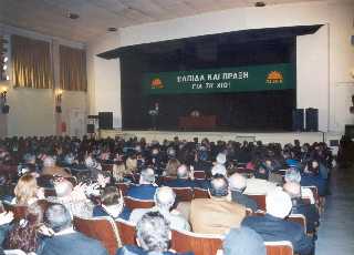 “Τη συγκέντρωση χαιρέτησε o Δήμαρχος Χαϊδαρίου κ. Ντηνιακός, ενώ διαβάστηκαν μηνύματα του πρώην υπουργού Αλέκου Παπαδόπουλου, τον οποίο έκτακτες υποχρεώσεις εμπόδισαν να συμμετέχει, του Νομάρχη Πολύδωρου Λαμπρινούδη και του Δημάρχου Χίου Μάρκου Μεννή.