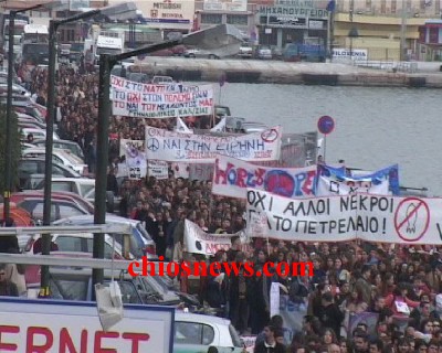 Στη Χίο, στην πλατεία Βουνακίου μαζικοί φορείς και πολίτες θα υψώσουν τη δική τους φωνή κόντρα στον πόλεμο.