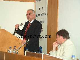 Στο χαιρετισμό του ο Νομάρχης Χίου τόνισε τα προβλήματα που δημιουργούνται λόγω της νησιωτικότητας. Σημείωσε την προσπάθεια που καταβάλλει για την ανάπτυξη της επιχειρηματικότητας η Νομαρχιακή αυτοδιοίκηση μέσα από την ΕΝΑ Χίου, το Κέντρο Υποδοχής Νέων Επιχειρηματιών, σημειώνοντας ότι απευθύνθηκαν σε αυτούς 256 ενδιαφερόμενοι κυρίως για τον τομέα του αγροτοτουρισμού. Στη συνέχεια έγινε αναφορά στα έργα υποδομής που προωθεί η Ν.Α..