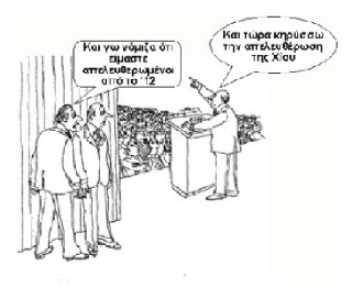 “Αφού πριν από λίγες εβδομάδες είδαμε πρωτοφανείς ακραίες συμπεριφορές από το δίδυμο νομάρχη – δημάρχου και των πέριξ αυτών, με το αίτημα “εδώ και τώρα επέκταση του αεροδρομίου”, αφού είδαμε κλίμα εθνικής απελευθέρωσης με την αλήστου μνήμης συγκέντρωση του Ομηρείου, τελικά εκείνο που απέμεινε είναι το κλείσιμο του υπάρχοντος δρόμου νότια του αεροδρομίου και τα αναθέματα όλων των Χιωτών προς το δήμαρχο και το νομάρχη.